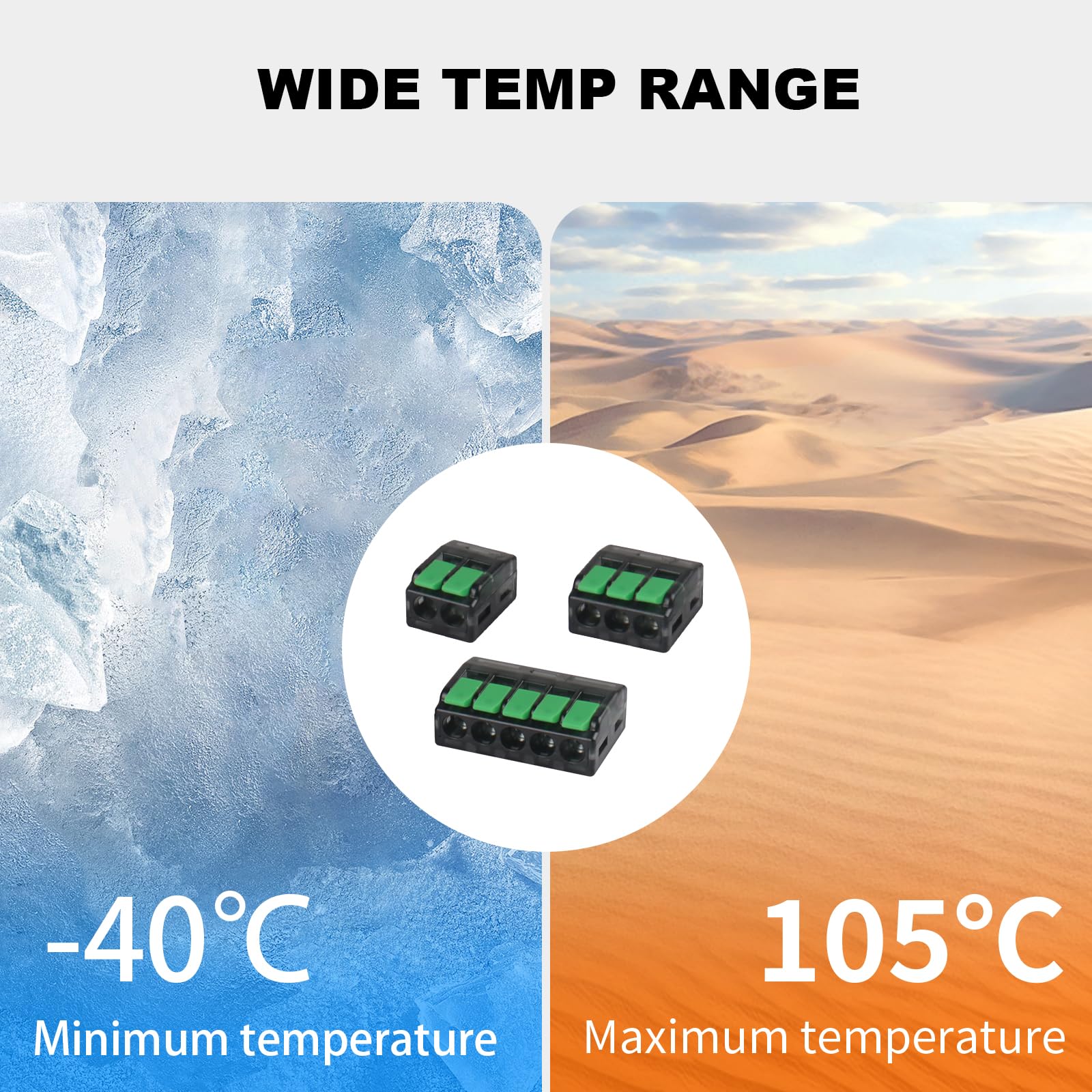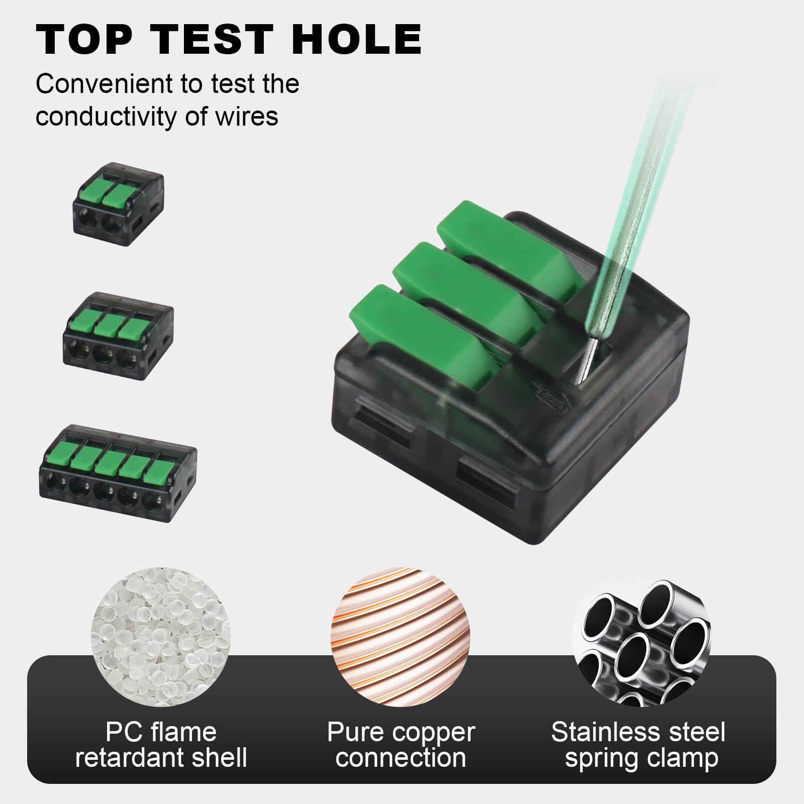 - Safe and Reliable: The lever wire connectors are made from flame-retardant insulating material and tin-plated copper. They feature corrosion resistance, high-temperature resistance, electrical leakage prevention, strong electrical conductivity, reusable, and long service life.